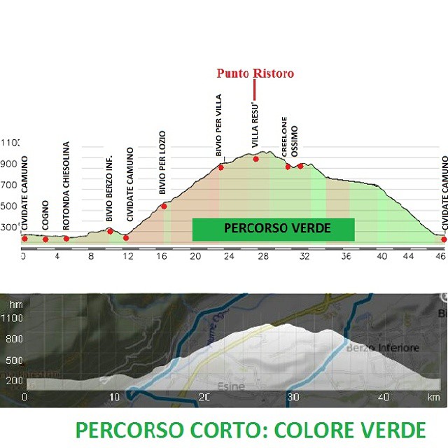 Percorso corto: 46 km, 940 m di dislivello #maratonadelaAlCamonega #21giugno2015 #vallecamonica #lozio #cividatecamuno #malegno #esine #piancogno #ossimo #creelone