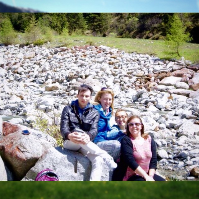 The four of us #friends #uni #gita #mountain #river #sun #spring #beautifulday #happyness #ValCamonica #InstaSize