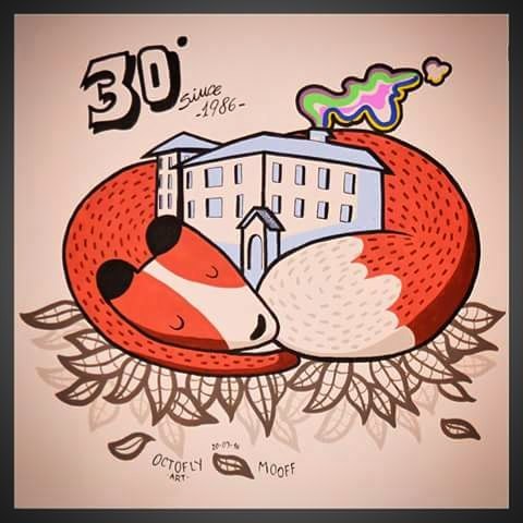 #art #octoflyart #mooff #livepainting #breno #vallecamonica #fiera #sunnyday #canvas #big #fox #rainbow #spring #firstdayofspring #italianartist #supportyourlocalartist